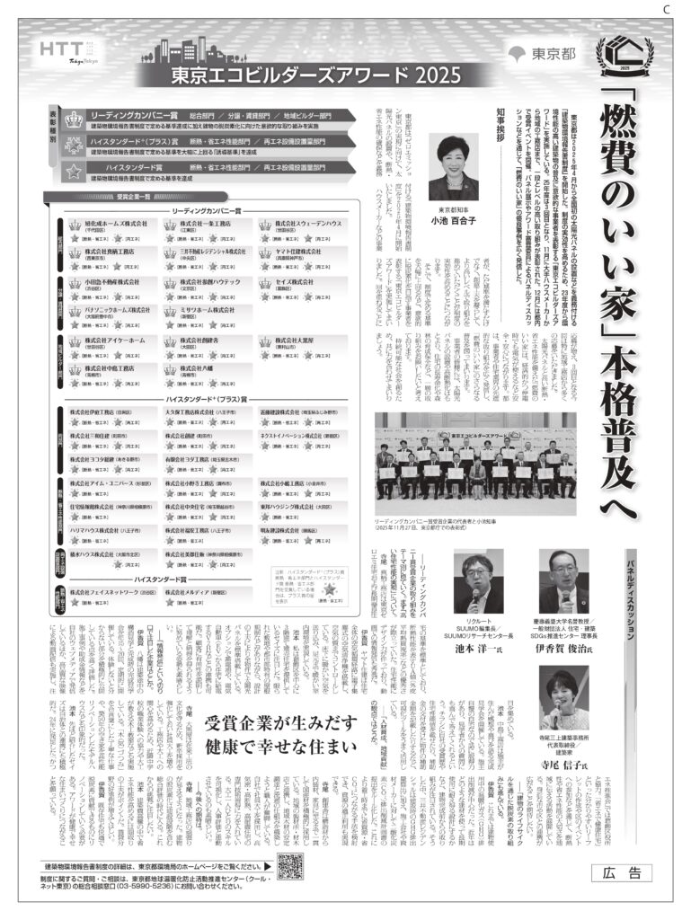 以前受賞報告をいたしました「東京エコビルダーズアワード」について、東京都様が日経新聞に記事を掲載くださいました
